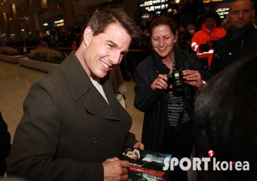 할리우드 배우 톰 크루즈가 영화 `미션 임파서블:고스트 프로토콜` 홍보차 2일 오전 인천국제공항을 통해 내한했다. 톰크루즈가 팬에게 사인을 해 주고 있다.