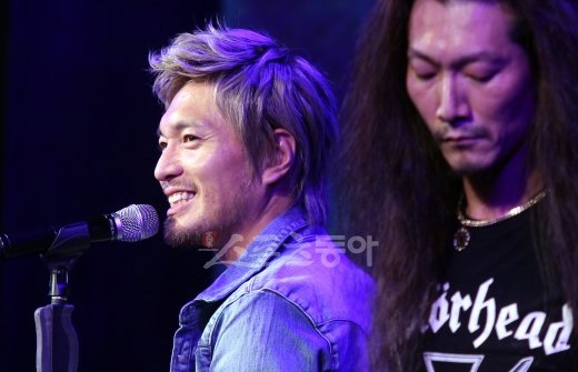 가수 임재범이 7일 오후 서울 서초구 리버사이드호텔 콘서트홀에서 열린 '임재범 리메이크 앨범 [풀이(free)]쇼케이스'에서 화려한 공연을 펼치고 있다.