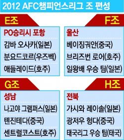 한편 울산은 베이징 궈안(중국), 브리즈번 로어(호주), 일본 국왕컵 우승 팀과 F조에 속했고, 성남은 G조에서 나고야 그램퍼스(일본), 톈진 테다(중국), 센트럴코스트(호주)와 경쟁한다.