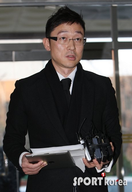 8일 오후 서울 영등포경찰서에 가수 이하늘을 명예훼손 혐의로 추가 고소한 박정환이 출두해 기자들의 질문에 답하고 있다.