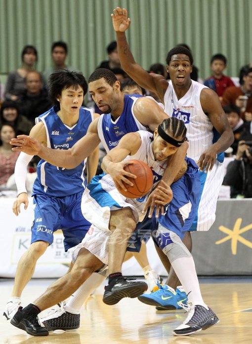 9일 서울 잠실실내체육관에서 열린 2011-2012 프로농구 서울 삼성와 전주 KCC의 경기에서 KCC 전태풍이 상대 수비를 파고 들고 있다.