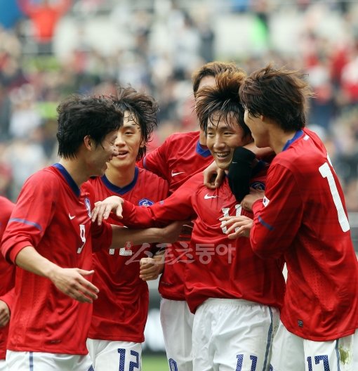 올림픽대표인 조영철이 일본 J리그 알비렉스 니가타에서 오미야 아르자디로 이적한다. 지난달 27일 사우디와의 올림픽 최종예선에서 골을 넣고 동료들에게 축하받는 조영철(오른쪽에서 2번째). 스포츠동아DB