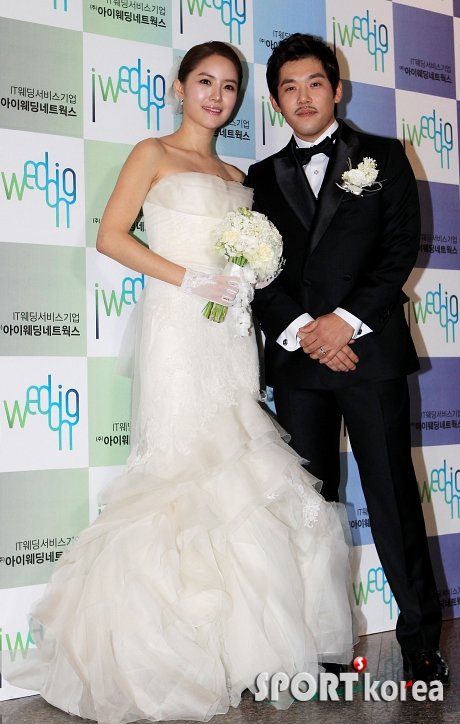 KIA 이용규와 탤런트 유하나가 17일 오후 서울 한남동 하얏트 호텔에서 열린 결혼식 기자회견에 참석해 포즈를 취하고 있다.