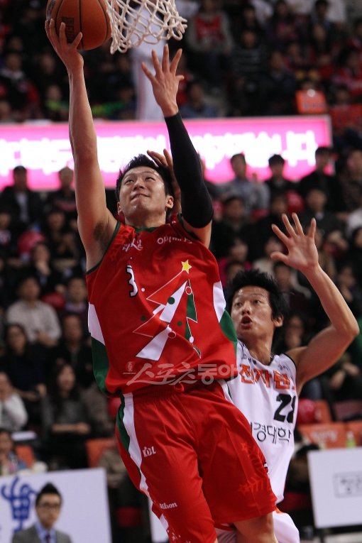 21일 안양실내체육관에서 열린 2011-2012 프로농구 안양 KGC 인삼공사와 인천 전자랜드의 경기에서 인삼공사 이정현이 전자랜드 임창한의 수비를 피해 슛을 시도하고 있다.
