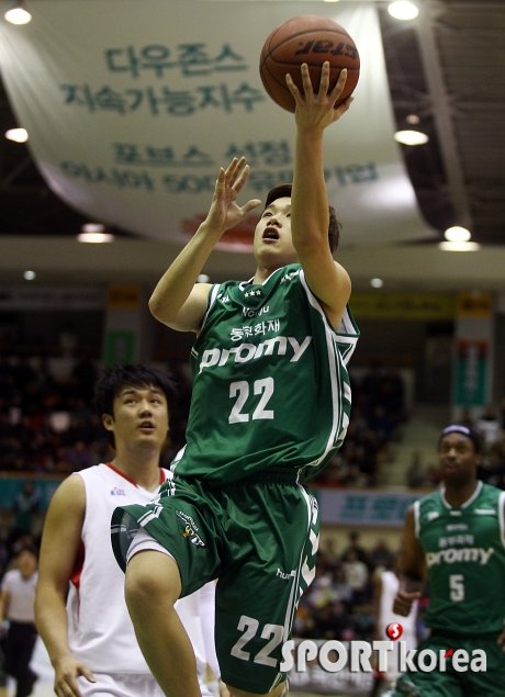 `2011-2012 KB 국민카드 프로농구` 원주 동부 프로미와 고양 오리온스의 경기가 25일 오후 원주 치악체육관에서 열렸다. 2쿼터 동부 안재욱이 오리온스 김동욱의 수비를 뚫고 슛을 던지고 있다.