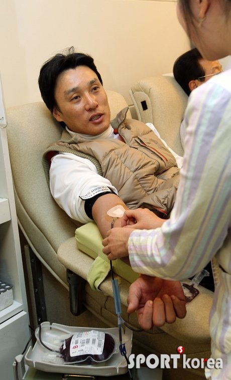 삼성 라이온즈가 사랑의 헌혈행사로 이웃사랑을 실천했다.<br><br>김인 사장, 류중일 감독, 그리고 이승엽을 비롯한 60여명의 선수단이 29일 대구 동성로 헌혈의 집에서 오후 3시부터 사랑의 헌혈행사를 실시했다.<br><br>이승엽이 헌혈을 하며 간호사와 이야기를 나누고 있다.