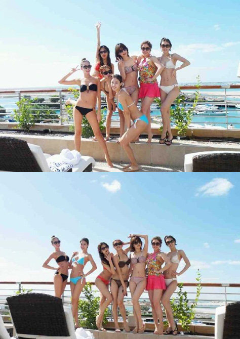 걸그룹 나인뮤지스의 막내 혜미가 자신의 트위터에 멤버들과 함께 찍은 비키니 사진을 공개했다.