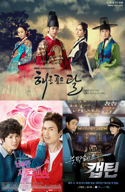 5일 시청률조사전문 AGB닐슨미디어리서치 조사 결과에 따르면 4일 방송된 MBC '해를 품은 달'이 시청률 18.0%(전국가구 기준)를 기록해 선두에 나섰다. 이어 SBS '부탁해요 캡틴'이 9.2%, KBS '난폭한 로맨스'가 7.1%로 뒤를 이었다.