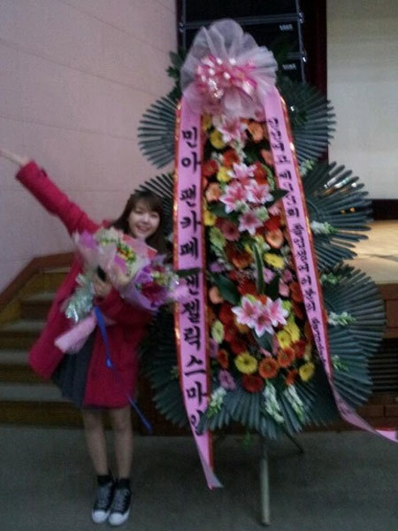 특히 민아는 졸업식장에서 촬영한 사진을 남겨 눈길을 끌었다. 팬들이 보낸 화환 앞에서 밝게 웃고 있는 모습이었다.