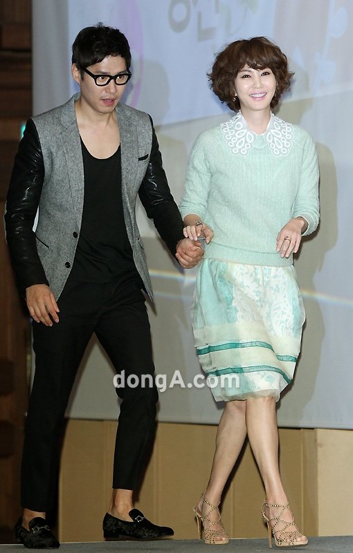 배우 유준상(왼쪽)과 김남주가 21일 오후 서울 강남구 임피리얼팰리스호텔에서 열린 KBS 드라마 ‘넝쿨째 굴러온 당신’ 제작발표회에서 무대에 오르고 있다.