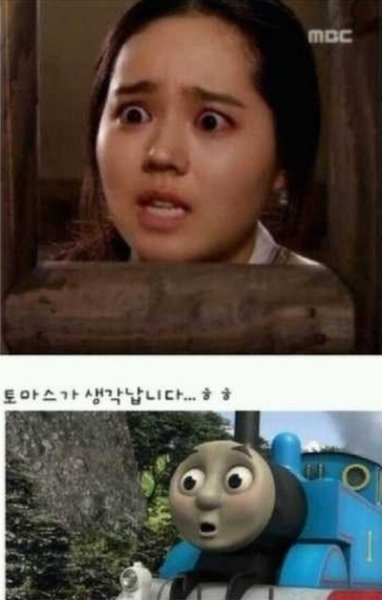 최근 한 온라인 커뮤니티에는 MBC TV 드라마 ‘해를 품은 달’의 여주인공 한가인과 만화 캐릭터 토마스 기차를 비교한 사진이 게재됐다.