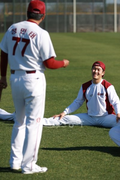 걱정은 없다. 김 감독은 “애리조나에서도 (오전) 9시30분 훈련이면 7시20분에 나와 몸을 푸는데 무슨 말이 필요하겠냐”며 “그런 모습은 후배들에게도 귀감이 된다”고 칭찬했다. 정 코치 역시 “빅리그 출신답게 자기 몸 관리가 철저하다. 단, 팀에 적응이 관건이기 때문에 선수들과 잘 어울릴 수 있도록 중간 역할을 해주려고 한다. 그런데 그 부분도 걱정이 안 된다. 이미 허물없이 잘 지내고 있다”고 만족감을 드러냈다.