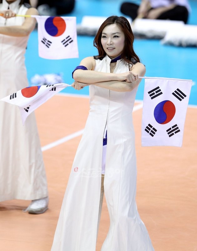 3월 1일 삼일절 오후 대전 충무체육관에서 열린 프로배구 2011-2012 V-리그 삼성화재와 대한항공의 경기에서 치어리더가 공연을 펼치고 있다.