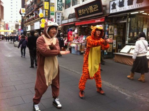 B1A4 멤버 바로와 공찬은 다람쥐와 호랑이 캐릭터 잠옷을 입고 서울 시내 10여 곳을 돌며 홍보 UCC를 제작했다.