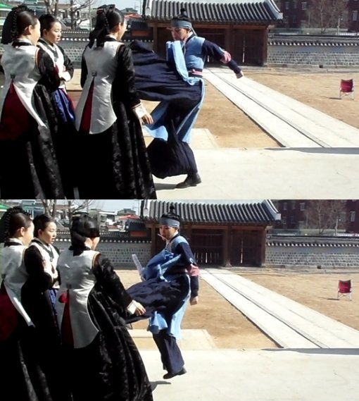 이는 한 스태프가 MBC 드라마 ‘해를 품은 달’(이하 해품달) 촬영 현장에서 찍은 것으로, 지난 14회에 방송된 설(윤승아)의 발차기 장면을 담았다.
