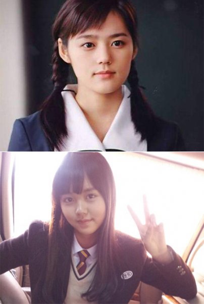 사진 속 김소현은 교복을 입고 V자 포즈를 취하며 미소 짓고 있다. 긴 머리와 또렷한 이목구비의 청순미가 돋보인다. 전체적인 이미지와 분위기가 한가인을 연상시킨다.