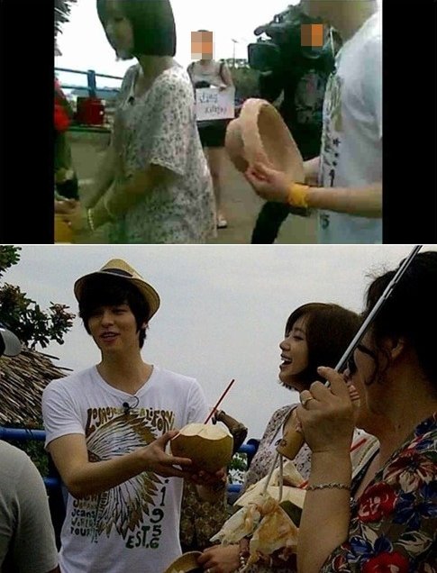 12일 한 온라인커뮤니티 게시판에는 ‘짜고 치는 우결’이라는 제목으로 사진 여러 장이 게재됐다. 이 사진은 ‘우결’에 출연하는 이장우·함은정 커플이 최근 인도네시아를 찾아 촬영하는 모습이 담겼다. 관광객이 찍은 것으로 보이는 이 사진에서 이장우와 함은정이 코코넛을 사 먹는 장면 뒤로 스태프로 보이는 한 여성이 “코코넛 사 먹자”라고 쓴 종이를 들고 있다. 누리꾼들은 이 여성을 작가로 지목하며 “상황을 일일이 지시하는 것 같다”는 반응을 보였다.