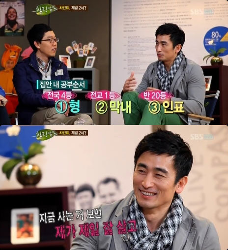 차인표는 12일 방송된 SBS ‘힐링캠프, 기쁘지 아니한가’에서 “나는 보통이고 우리 형과 동생은 정말 공부를 잘했다”고 말했다.