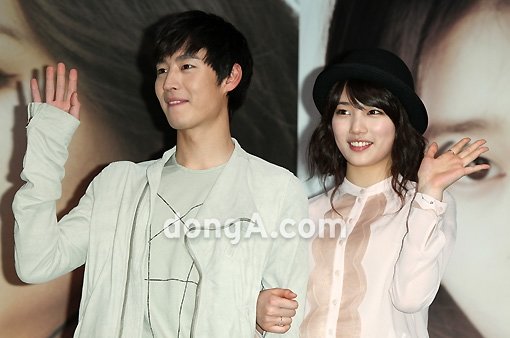 배우 이제훈(왼쪽)과 수지가 13일 오후 서울 광진구 롯데시네마 건대입구에서 열린 영화 ‘건축학개론’ 언론 배급 시사회에서 포토타임을 갖고 있다.