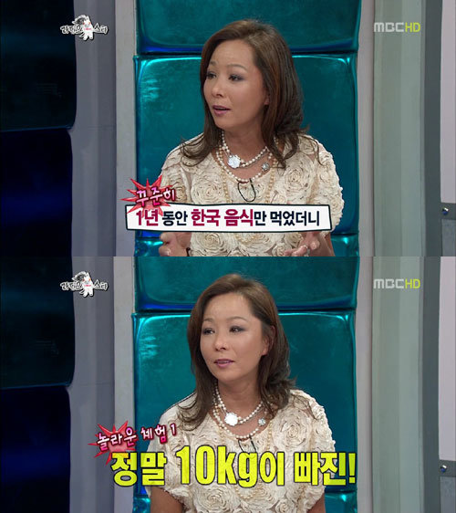 김진아는 14일 방송된 MBC ‘황금어장-라디오스타’에서 “남편이 1년간 한식만 먹어 10kg을 감량했다”고 말했다.