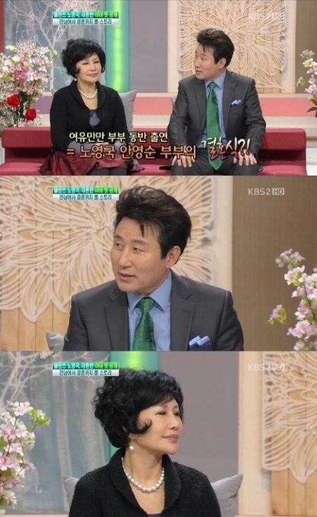 노영국은 “혼인 신고는 했지만 결혼식은 못했다. 여러 가지 일 때문에 자꾸 미뤄지게 됐다”라며 “‘여유만만’에 부부로 출연하는 것을 결혼식 대신 알리는 게 아닐까 싶어 출연을 결정했다”고 말했다.