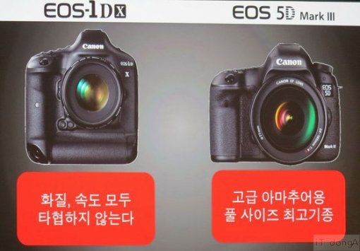 이날 발표한 5D Mark III는 하이엔드급 DSLR 카메라 시장에서 고삐를 늦추지 않겠다는 캐논의 의지일 것이다. 전작이 워낙 인기 있던 물건이었기 때문에 후속모델을 발표하는 것이 어찌 보면 당연한 것이지만, 5D Mark III의 성능이나 기능 등을 살펴보면 단순히 전작의 개량 모델이라고 하기엔 변화의 폭이 제법 크다. 일부 성능은 플래그십급 제품에 필적할만해서, 혹시나 ‘팀킬’ 제품이 아닌가 의심스러울 정도다.