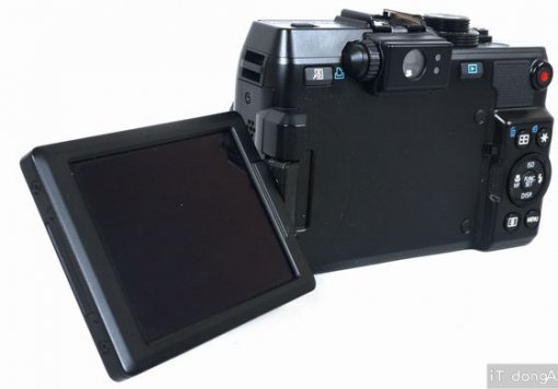 본체 뒤쪽에 탑재된 3인치 크기의 LCD는 회전이 가능해서 카메라 정면이나 측면에서 촬영할 때 유용하다. LCD 상단에는 광학식 뷰파인더가 달려있어 LCD 대신 이를 보면서 촬영할 수도 있다. 다만, LCD와 달리 뷰파인더에는 각종 촬영 정보가 표시되지 않고, 디지털 줌 기능 사용시에 화면 확대가 되지 않으므로 활용 범위가 다소 제한적이다. 사용자의 취향에 따라 LCD와 함께 사용하는 것을 추천한다.