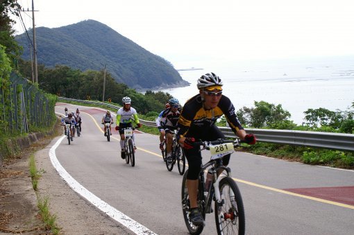 3월 31일과 4월 1일 전남 완도에서 바닷길을 끼고 달리는 자전거연합회장기 대회가 열린다. 자전거대회에 출전한 동호인 선수들이 바다 풍광을 바라보며 힘차게 페달을 밟고 있다.사진제공|국민생활체육회
