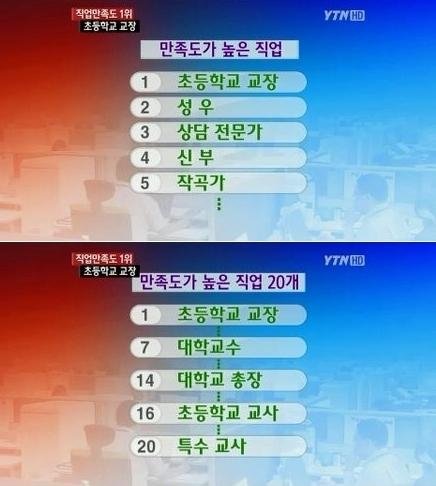 초등학교 교장이 직업 만족도 1위에 올랐다. 사진=YTN 방송화면 캡쳐