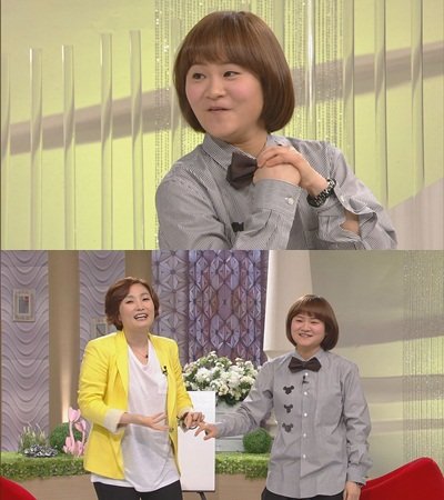 김신영은 음식 유혹을 참을 수 있었던 비결에 대해 “내가 구입한 캐릭터 비키니가 있는데 복부 살을 빼서 캐릭터의 코를 줄여주고 싶었다”고 말해 녹화장을 웃음바다로 만들었다.