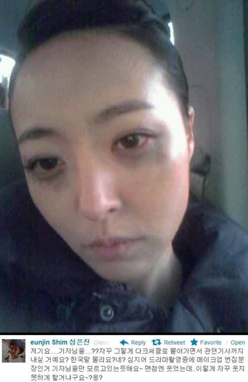 심은진은 “저기요. 기자님들? 자꾸 그렇게 다크서클로 몰아가면서 관련 기사 내실 거에요? 한국말 몰라요? 네?”라고 말했다.