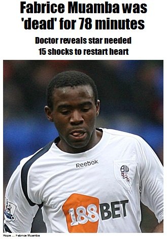 무암바의 주치의인 조너던 토빈 박사는 22일(이하 한국시각) 영국 언론과의 인터뷰에서 무암바가 그라운드에 쓰러진 후 병원에 도착하기까지 48분이 걸렸다. 병원에서도 30분간 상태에 변화가 없었다. 사실상 죽어 있던 것과 같다"고 전했다.