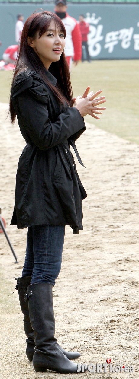 경기에 앞서 김민아 아나운서가 선수들의 훈련을 지켜보고 있다.