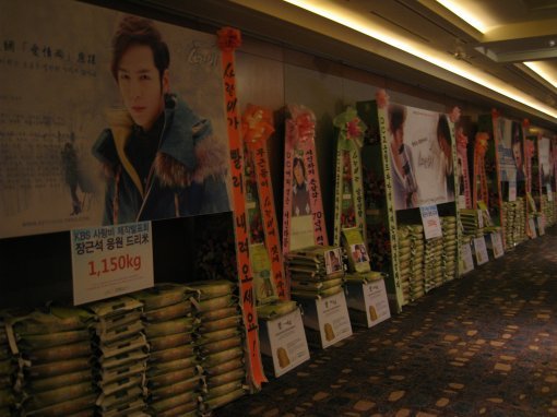 제작사 윤스칼라에 따르면 이날 총 1만4476kg의 쌀이 접수됐다. 장근석 국내외 40여개 팬 사이트가 9100kg, 윤아의 15개 팬 사이트가 4126kg을 기부했다. 연출을 맡은 윤석호 PD와 ‘사랑비’에서 연기자로 데뷔한 가수 서인국의 이름으로도 각각 650kg, 600kg의 쌀이 왔다.