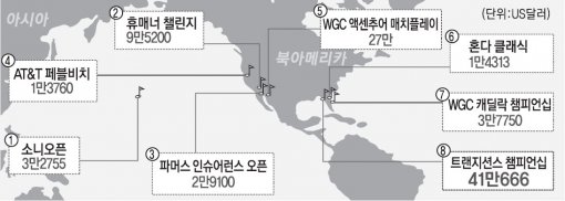 2월26일 끝난 월드골프챔피언십(WGC) 액센추어 매치플레이 챔피언십에서는 공동 5위에 오르면서 27만달러의 거액을 손에 넣었다. 2개 대회에서만 28만3760달러(약 3억2000만원)를 벌어들였다.