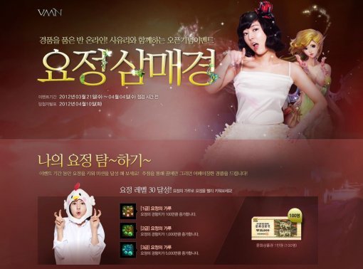 드래곤플라이는 ‘반 온라인’ 공개서비스를 기념해 ‘요정 삼매경’과 ‘반 온라인 5색 맛보기’ 이벤트 등 푸짐한 경품을 얻을 수 있는 다양한 이벤트를 4월 4일까지 진행한다. 자세한 내용은 공식홈페이지(www.vaanonline.com)를 참고하면 된다.