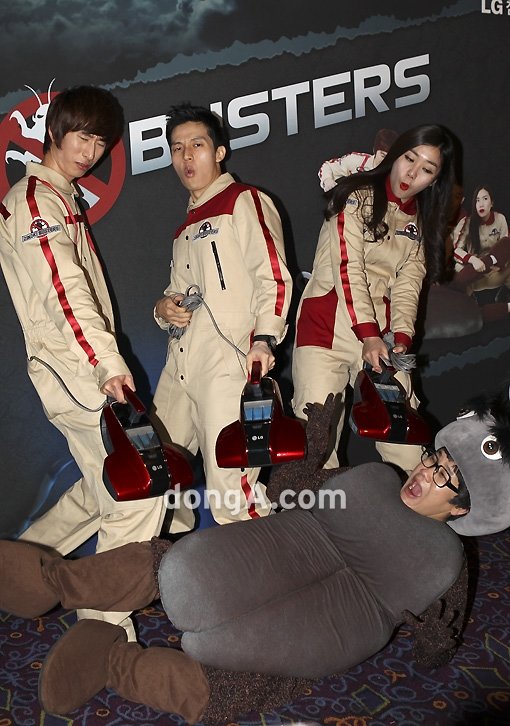 개그맨 양상국, 허경환, 허안나, 류정남(왼쪽부터 시계 방향으로)이 23일 오전 서울 종로구 롯데시네마 피카디리극장에서 열린 LG전자 침구 청소기 애드무비 ‘진드기 버스터즈’시사회에서 포토타임을 갖고 있다.