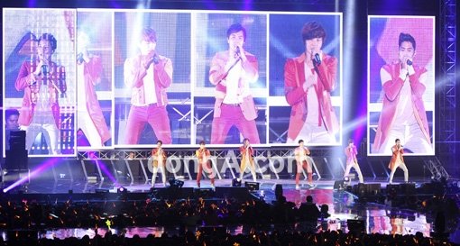 그룹 신화 멤버가 25일 오후 서울 송파구 올림픽체조경기장에서 열린 14주년 기념 SHINWA GRAND TOUR IN SEOUL ‘THE RETURN’콘서트에서 화려한 공연을 펼치고 있다.