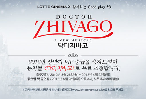 2012년 VIP 승급자 쿠폰북 발급자에 한해 당사 홈페이지에서 응모한 고객들 중 추첨을 통해 당첨자에게 뮤지컬 ‘닥터 지바고’ 공연 입장권을 1인 2매씩 600명에게 제공한다.