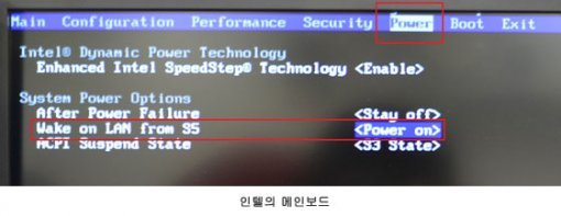 CMOS 설정방법은 제조사마다 약간씩 다르다. 인텔의 메인보드를 사용하고 있다면, Power 메뉴로 이동해 ‘Wake On Lan from S5’를 Power Off에서 Power On으로 바꾸면 된다. 아수스의 메인보드(UEFI)를 사용하고 있다면, ‘Advanced Mode’ > ‘APM’으로 이동해 'Power On By PCI' 및 'Power On By PCIE'를 Enabled로 설정하면 된다.