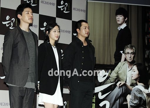 배우 김무열, 박해일, 김고은(왼쪽부터)이 27일 오후 서울 광진구 롯데시네마 건대입구에서 열린 영화 ‘은교’제작보고회에서 포토타임을 갖고 있다.