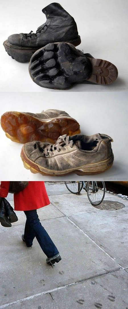 캐나다 출신 예술가 마스컬 라세르가 고안한 무서운 발자국 신발. 사진 출처=마스컬 라세르 공식 홈페이지