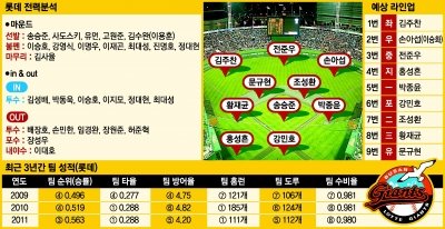 롯데는 사이판과 괌 스프링캠프에서 포커스를 수비와 기동력에 맞췄다. 연습경기와 시범경기에서 확실히 안정된 기조를 보였다. 그러나 또 하나의 축인 불펜 전력 강화에 있어서는 아직 미지수다. SK에서 데려온 두 FA 정대현, 이승호가 제 실력을 발휘하기까지는 시간이 걸릴 듯하기 때문이다. 롯데는 지난해까지의 트레이드 마크였던 공격야구, 선발야구, 초전박살야구의 기조를 전환했다. 그러나 이것은 원해서 그랬다기보다는 전력누수로 인한 불가피한 선택이었는지 모른다. 관건은 롯데가 1점 싸움의 야구, 불펜 싸움의 야구, 디테일의 야구를 할 수 있느냐는 점이다. 객관적 전력이 예년보다 못한 가운데 롯데는 어쩔 수 없이 이제까지와는 다른 야구에 돌입한다. 이런 과정 속에서 세대교체까지 진행한다. 양승호 감독은 더불어 ‘무조건 우승’을 갈망하는 부산 팬들의 기대도 충족시켜야 하는 첩첩산중에 놓여있다.김영준 기자