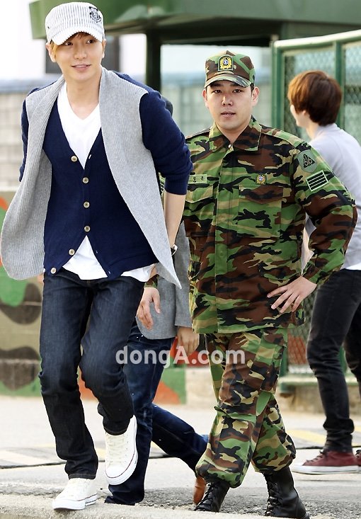 슈퍼주니어 강인이 16일 오전 경기도 남양주시 이패동 56사단 금곡예비군훈련장 앞으로 걸어나오고 있다. 지난 2010년 7월 입대한 강인은 군복무를 마치고 현역 제대했다.