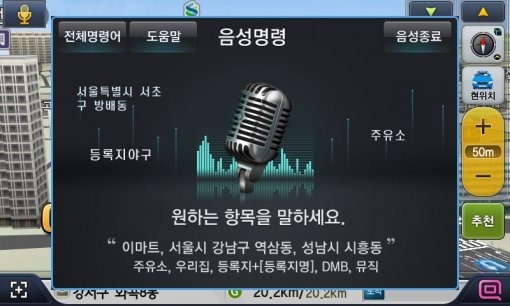 내비게이션 소프트웨어를 켠 후 목적지 검색부터 안내까지 별도의 터치 없이 음성만으로 조작할 수 있다. 내비게이션 외에도 DMB, 뮤직 등 다른 기능도 수행한다.