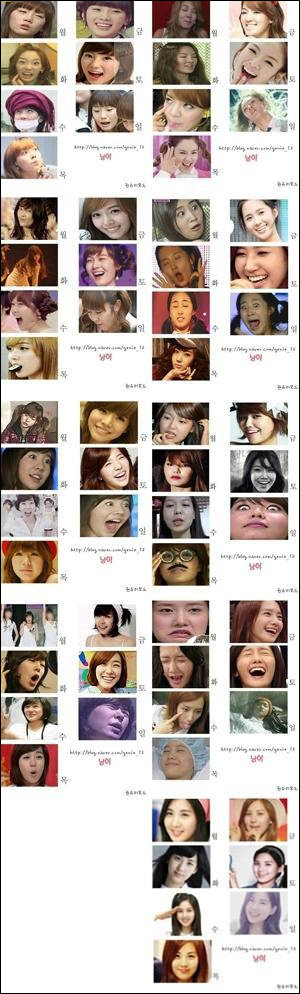 ‘소녀시대 요일별 표정’ 사진을 접한 누리꾼들은 “기발한 아이디어 네요”, “소녀시대 요일별 표정 보고 경악”, “서현이는 언제나 웃고 있어”등의 반응을 보였다.