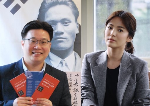성신여대 객원교수 서경덕(왼쪽)과 배우 송혜교(오른쪽). 사진제공|서경덕