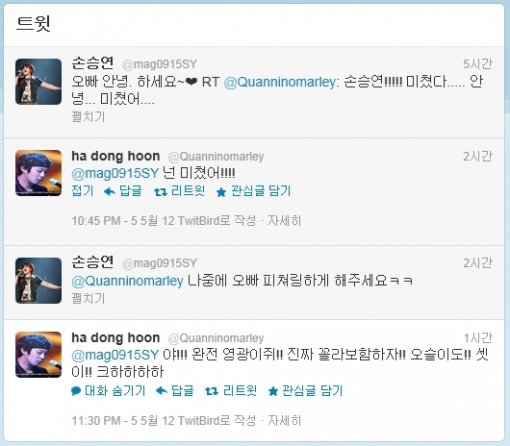 가수 하하와 엠넷 '보이스 코리아' 손승연이 트위터 상에서 나눈 글이 화제다.