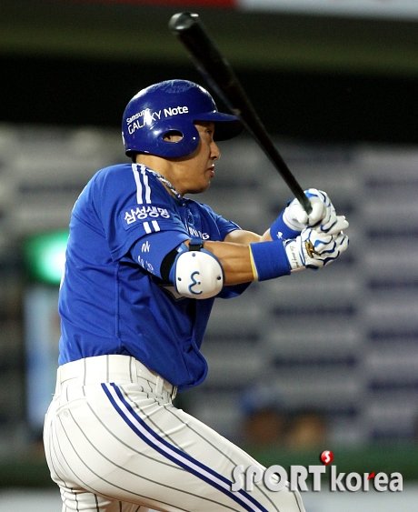 ‘2012 팔도 프로야구’ 롯데 자이언츠와 삼성 라이온즈의 경기가 8일 오후 부산 사직야구장에서 열렸다. 6회초 2사에서 삼성 3번 이승엽이 한일 프로야구 통산 2,000 안타를 치고 있다.