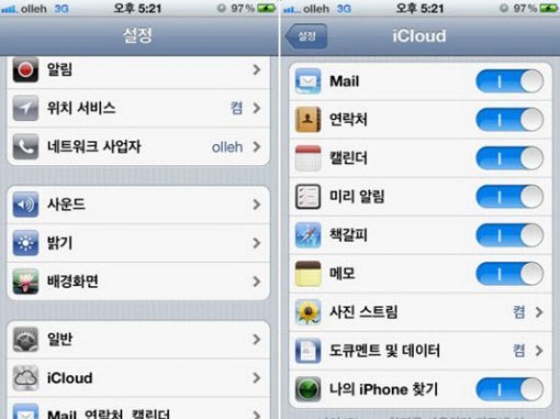 애플은 iOS5부터 아이클라우드를 제공, 이메일과 연락처, 캘린더, 미리 알림, 책갈피, 메모, 사진 스트림, 도큐멘트 및 데이터, 나의 iPhone 찾기 정보 등을 자동으로 백업해주고 있다. 백업 저장 공간은 기본 5GB를 무료로 제공하며, 그 이상 필요할 경우 따로 구매해야 한다. 아이폰 [설정]-[iCloud] 메뉴로 들어가면, 각 정보를 선택해 백업할 수 있다.